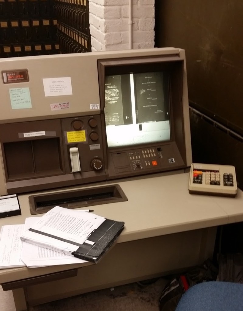 As with other on-site research, I’d done my homework well beforehand. Today, I was after a civil case from 1932. Calling ahead of time and following up by email, I learned that many case files are housed off-site. If the file I was interested in were off-site, archives staff would need to pull it back before my arrival. Luckily, mine was kept on-site (microfilm). Doing my homework beforehand also gave me the point of contact’s name. Weeks before my flight from California to Louisiana, I had already spoken with a very helpful (and knowledgeable) staff person. I explained that the main reason for my cross-country flight was to make a copy of this file. I was assured the film would be waiting for me on our set date. Again, there is a flow to these things, and lining everything up well ahead of time helps everyone concerned.
