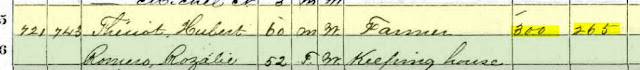 Here, we see 1860 census information for Hubert Theriot (about 1813 – 9 Mar 1881). Notice his reported real estate ownership is for $15,000. His personal estate was $5000.